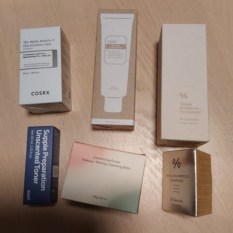 The potions hudpleiesett med cica smooth face Cleanser, cleansing foam toner, peeling pd and cream mixer. Åpnet og prøvd en liten periode, men pga hudproblen gikk jeg over til reseptbelagt, selges derfor. Mye igjen i tubene og toneren, ca halvparten av padsene (se bilde to).