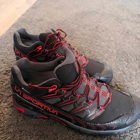 Selger et ubrukt par La Sportiva Hyper GTX tursko i størrelse 41,5. Dette er mitt andre par, men fikk dessverre feil størrelse. Fantastisk sko som er både robust og komfortabel. Er opprinnelig en anmarsjsko, men kan brukes til både normal turgåing og klyving/klatring. Ekstremt godt grep på både våt og tørr stein.