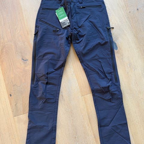 Move On bukse for dame i størrelse 38. Buksen er blå med mørke kontrastfelt på knær og sete. Den har flere glidelåslommer foran og justering nederst på bena. Egner seg som fritids- eller turbukse. +76kr frakt pent brukt ikke skader eller flekker, kan brukes enda mer lenge til bilig pris kan sende +76kr frakt