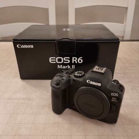 Canon r6 mark ii i god stand selges kr 20 000,-. Orginaleske medfølger.