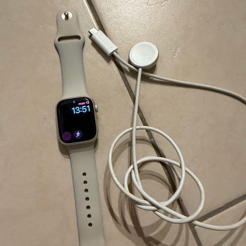 Apple Watch pent brukt og fungerer som den skal. Det er noen små riper i skjermen,men de er knapt synlig ved bruk. Det følger med en sort reim med borrelås.Den selges for kr 1000,- pluss porto