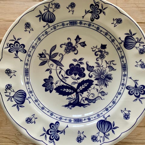 To tallerkener Blue Onion (blått løkmønster) Churchill England