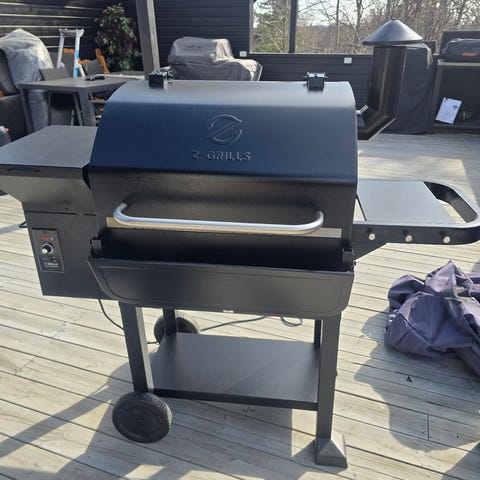 Følger med med verktøy for å skrape/løfte på plass rister, probe, manual og litt pellets.