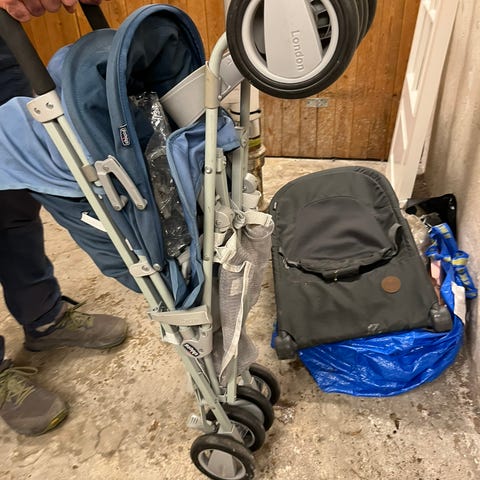 Brukt, men kan brukes mer. Stroppene som holder kurven under er revnet, men kan byttes.