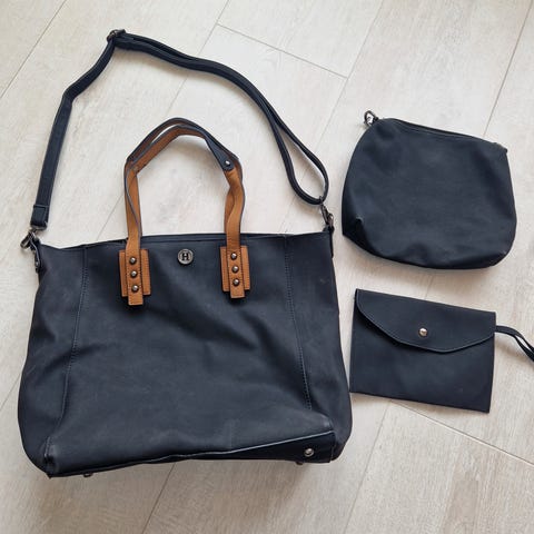 Den er laget i slitesterkt og vanntett nylon med detaljer i imitert skinn.
