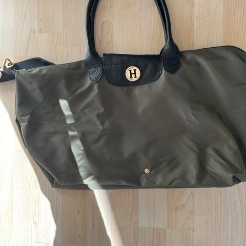 Vesken er gjenkjennelig på den sirkulære gulllogoen med bokstaven "H" på skinnklaffen med et romslig hovedrom, glidelåslukking og en klaff i skinn med trykknapp.