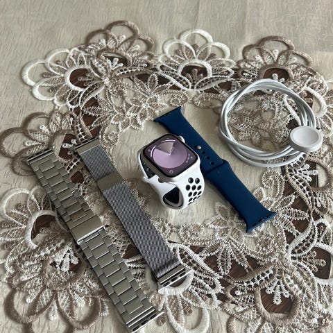 Apple Watch smartklokke med 45mm urkasse i midnight. Klokken har berøringsskjerm med visning av batteristatus, batteritilstand og numerisk tastatur for kodeinntasting. Egnet til bruk på håndledd med kompatibelt klokkeremfeste. Passer for både menn og kvinner.