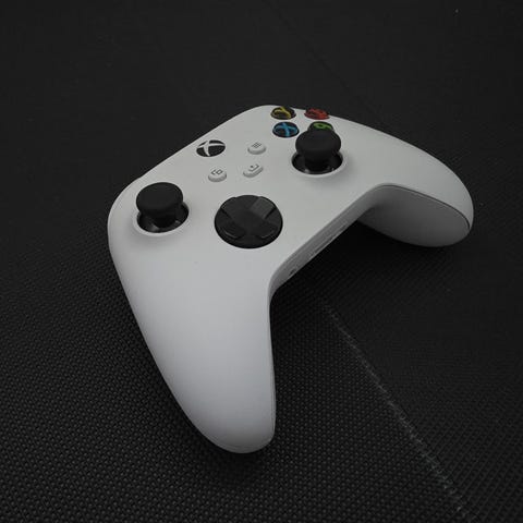 Xbox trådløs kontroller i blå og hvit farge. Kontrolleren er til Xbox Series X, men kan også brukes trådløs på PC. Kommer uten original eske