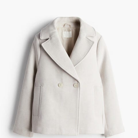 Vakker, lys beige klassisk jakke i italiensk ull inspirert av ytterskjorte.