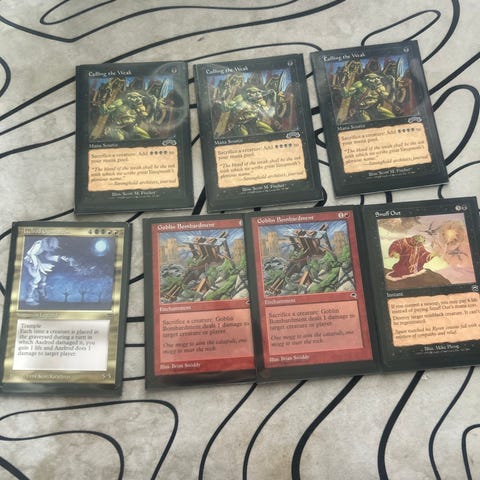 Her er det alt i fra common til full art mythic kort, alle korta er skannet i ManaBox appen og følger cardmarket priser, jeg har ikke tatt betalt for basic land, duplicates, tokens, art series kort, plastlommer og terninger, så det følger med uten kostnad, jeg er interessert i å selge hele samlinga så ikke spør om å kjøpe enkelt kort er du snill, her er det bare til å spørre om du lurer på no annet. 😁👌🏼