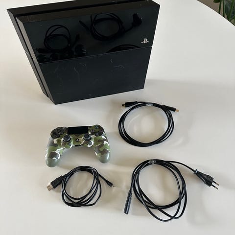 Selger en Sony Playstation 4 med 1TB lagring. PS4 kommer med HDMI-utgang, nettverksport, USB-tilkoblinger foran. På bildene følger det med strømkabel, HDMI-kabel og USB-kabel til tilkobling av kontroller samt et FIFA 21 spill. Konsollen er egnet for spilling, streaming og medieavspilling med kompatible spill og tjenester for Playstation 4. Konsollen er tilbakestilt og oppdatert til siste versjon.