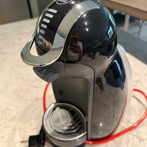Selger en pent brukt og kompakt Dolce Gusto Piccolo kaffemaskin fra De'Longhi. Denne er perfekt for deg som har begrenset benkeplass eller ønsker en enkel maskin til hybelen eller kontoret.Maskinen bruker kapsler og kan lage alt fra espresso og kaffe latte til varm sjokolade og iste. Den er enkel å rengjøre og klar til bruk.