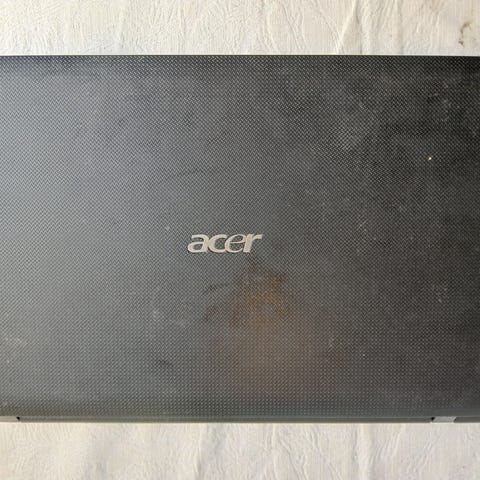 Brukt med tydelige tegn på slitasje. Støv og smuss på overflater. Mangler deksel til minne- og/eller harddisk-brønn på undersiden. Riper og merker på kabinettet.