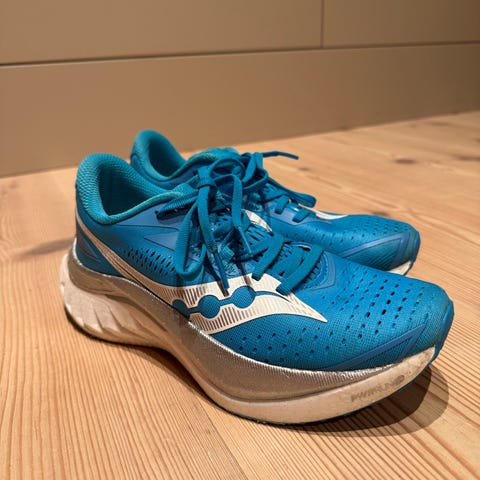Saucony Endorphin Speed 4 løpesko i størrelse 38. Modellen er en nøytral løpesko til løping, med overdel i pustende meshmateriale. Skoen har mellomsåle med PWRRUN PB-skum og en tydelig buet sålekonstruksjon som gir jevn stegavvikling. Støpt nylonplate i sålen. Egnet til løping på vei og lett underlag, både til rolige turer og raskere økter. Se ytterligere beskrivelse i bilder.