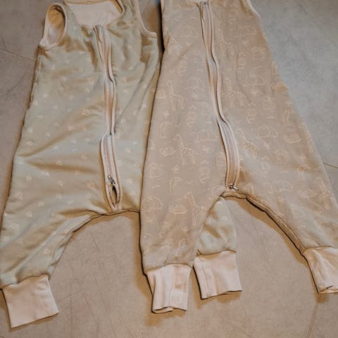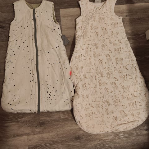 Jollein to i én sovepose. Man kan enten bruke den tjukke posen for seg (TOG 2,5), den tynne for seg (TOG 0,5) eller feste den tynne inni den tjukke (TOG 3,0). Passer best for barn fra 18 måneder. Den tynne soveposen har noen bruksmerker øverst ved halsen.