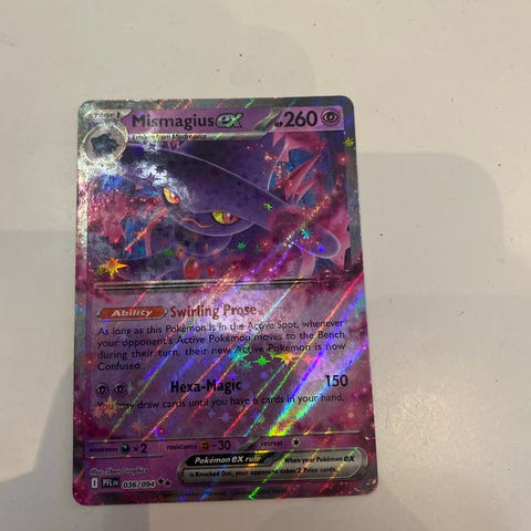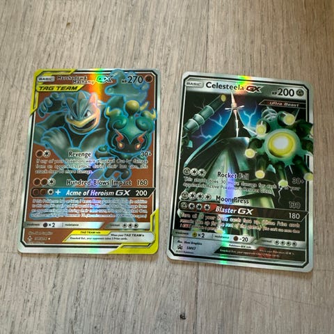 Pokémon Mesprit GX Full Art samlekort. Holofoil-kort med illustrasjon av Mesprit og angrepene Full Heart og Guardian Burst. Standard Pokémon-kortstørrelse, egnet for samling og spill i Pokémon Trading Card Game.