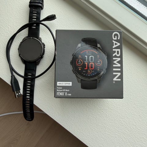 Garmin Forerunner 245 pulsklokke med sort urkasse. Den er godt brukt over flere år, men fungerer fortsatt som den skal! Noe redusert batterikapapsitet i forhold til de nyere modellene, lader den ca hver tredje dag☺️ Ladekabel følger selvsagt med! Klokken leveres med orginal silikonreim i mørke grå, og det følger med ekstra reimer i beige som vist på bildene. Egnet for både hverdagsbruk og trening for ulike brukere.