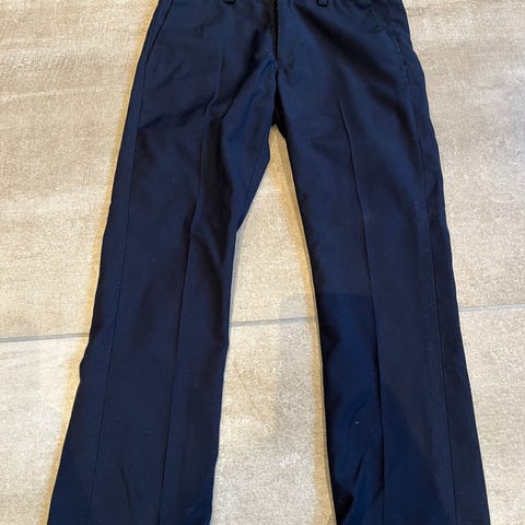 Sort dressbukse fra Dressmann i str 27/30. Det tilsvarer nok ca størrelse 164. Brukt to ganger.
