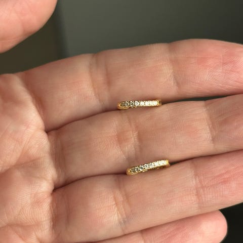 585/ 14K gult og hvitt gull med 0,02 crt diamant hver