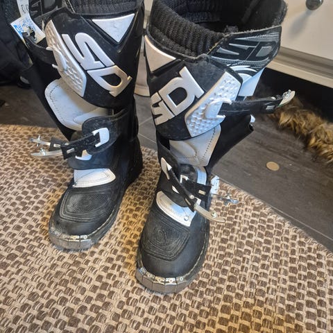 Alpinestars Tech 7 motocrossstøvler i blå farge. Støvlene er i størrelse 34. Tatt ut av boksen og prøvd på guttungen én gang, men de ble for stive. Aldri kjørt med.