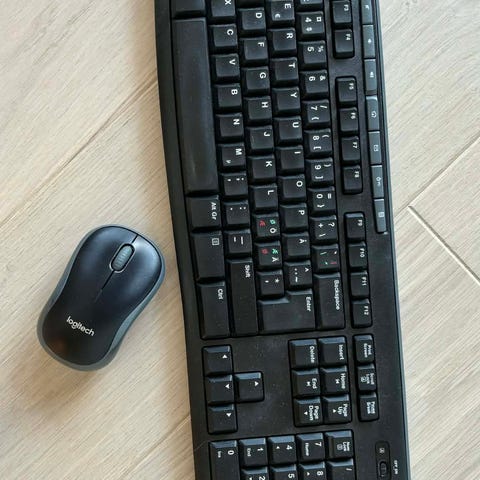 Logitech trådløst tastatur og mus sett i svart.