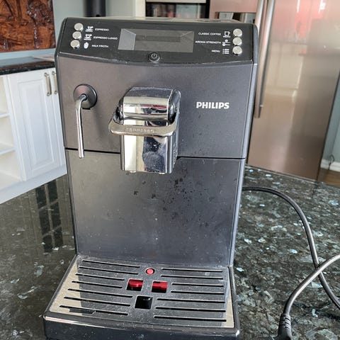 Gaggia K111 espressomaskin i bordmodell. Maskinen har avtakbar vanntank på baksiden og dryppbrett i metall foran. Effekt er 900 W og den er beregnet for 220–240 V, 50 Hz. Egnet for tilberedning av espresso og andre kaffedrikker hjemme på kjøkkenbenken.