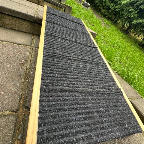Lite brukt hunderampe, slås sammen, med håndtak. L ca 100-180 B 43 Må hentes på Jessheim