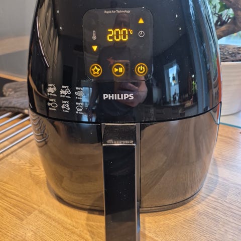 Selger en meget pent og lite brukt Philips airfryer da vi bruker den mindre enn vi hadde tenkt. Den er derfor lite og pent brukt.