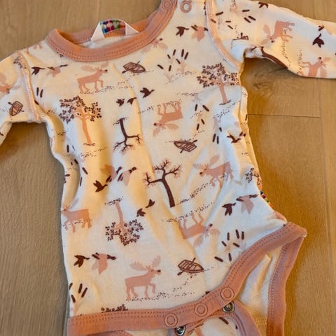 Joha body i ull størrelse 80. Rosa med mønster og kontrastkant. Materialet er ullblanding med høy andel ull, godt egnet som innerlag til hverdagsbruk alle årstider!
