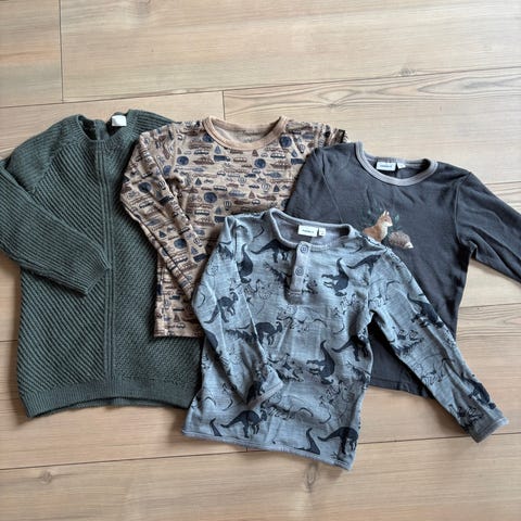 Veldig søte og fine bodyer, med unike mønster. Godt brukt. Den grønne har vært sydd og har et lite hull ved knappene. Den grå har misfarging i halsen. Blitt litt blassere men masse igjen til en Mummi fan!