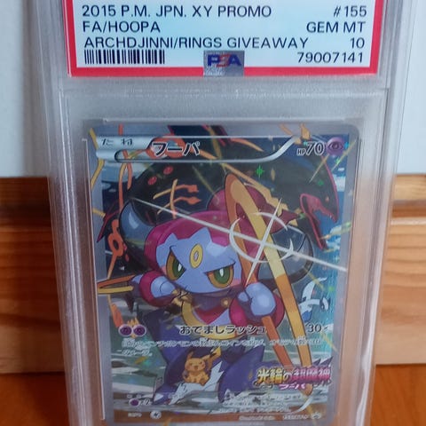Pokémon Hoopa XY Promo samlekort i japansk utgave. Kortet er innkapslet og gradert av PSA med karakteren GEM MT 10. Dette er et promokort fra XY-serien, med fargerik illustrasjon av Hoopa på forsiden og standard Pokémon-bakside. Egner seg for samlere av Pokémon-kort, spesielt de som fokuserer på japanske promo- og PSA-graded kort.