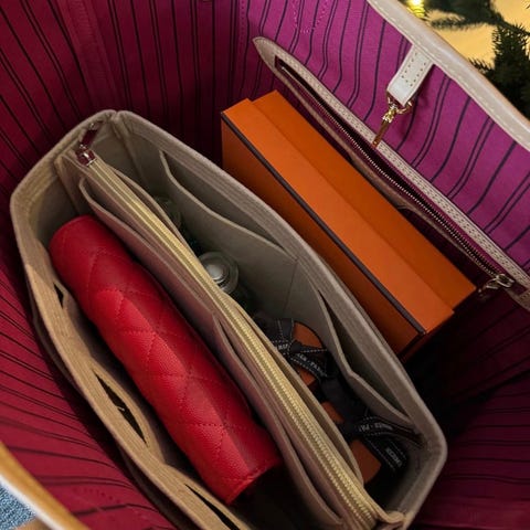 Har kjøpt fler organisatorer til forskjellige vesker, men bruker stort sett bare samme jeg flytter mellom veskene jeg bruker. Passer perfekt i for eksempel Louis Vuitton Neverfull (litt ledig plass) eller Malene Birger Abigal - Tote bag osv