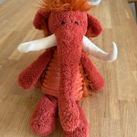 Jeg selger denne søte Jellycat katten i kordfløyel. Kjempemyk og god. Den har blitt vasket noen ganger og det meste av bildet på lappen er borte, men det kommer tydelig frem på lappen under at det er en Jellycat.