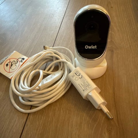 Babycall fra Owlet. Nett og praktisk babycall som kobles til app på telefonen. Lang ledning til kamera.