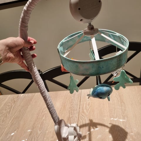 15 melodier, en unik beroligende lyd, 5 alternativer for hvit støy, en fascinerende rotasjon og ulike kontroller som kan tilpasses, gjør denne fortryllende uroen med sjøtema til det perfekte valget for babyen din