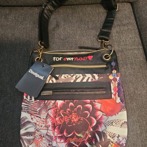 Selger en flott Desigual Rainbow dameveske med fargerikt blomsterprint, broderidetaljer og patchwork-design. Vesken er lite brukt og i svært god stand.