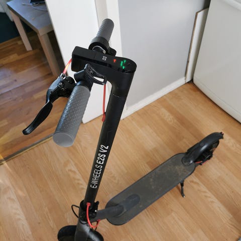 Sykkelen kan klappes sammen for enklere oppbevaring og transport. Lader følger med i pakken. Egnet som elektrisk fremkomstmiddel til korte og mellomlange turer på vei og gang-/sykkelvei der dette er tillatt.Den elektriske forbremsen var veldig følsom og farlig, så jeg koblet den fra, men den fungerer utmerket for å bremse bakhjulet med foten.
