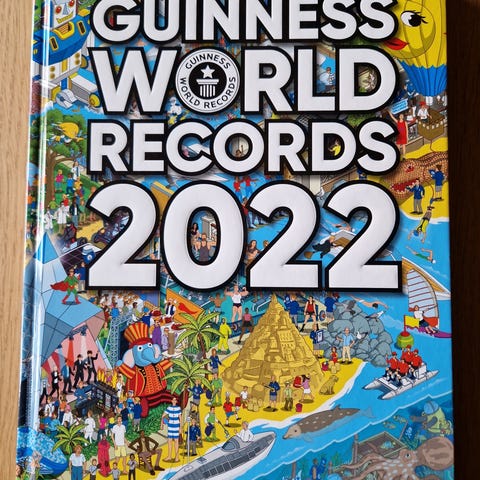 Guinness World Records 2022 bok. Inneholder en samling av rekorder fra hele verden innen ulike kategorier som sport, natur, teknologi, mennesker og kultur. Illustrert med fargerike bilder og grafikk. Innbundet utgave med stiv perm.