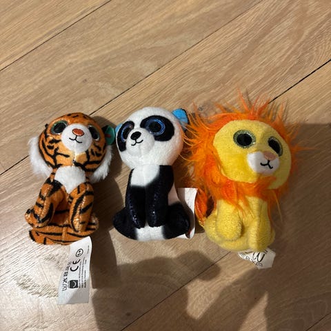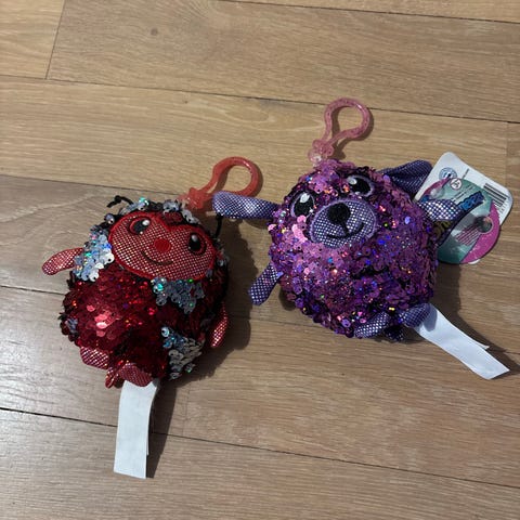 Ty Fashion små vesker / pengepung / lommebok med dyremotiv. Veskene har myk plysj på utsiden, store glitrende øyne og detaljer som paljetter og sløyfer. Innvendig har de fôr med mønster og lukkes med glidelås. Passer til oppbevaring av småting som mynter, nøkler eller andre små eiendeler for barn.