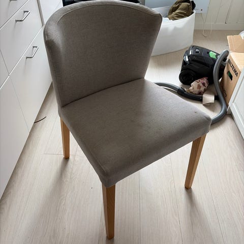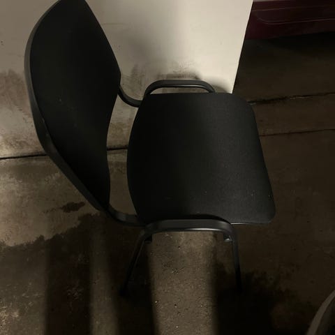 Brukt stol, med noen merker som kan vaskes bort. Høyden kan justeres.
