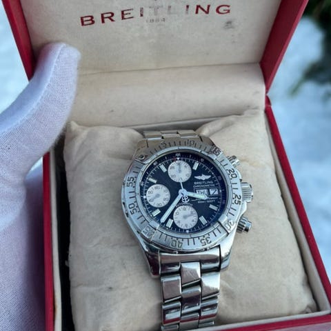 Klokken er kjøpt ny hos utlandsk grå handler, og kommer derfor uten breitling garanti, men med 2’års garanti og sertfikat ifra salgssted!