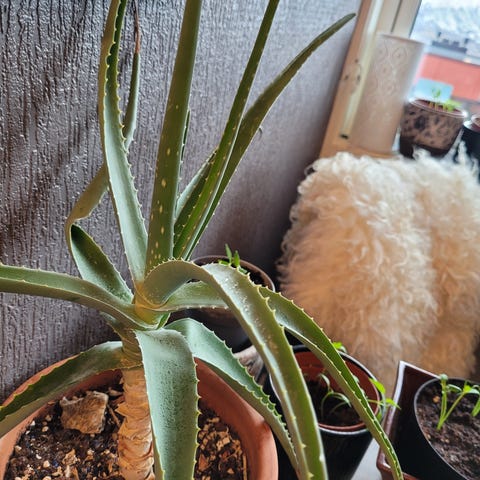 Relativt stor (omtrent en halv meter høy) piggete kaktus med veldig lange (3-4 cm) pigger, gis bort. Den er sunn, omtrent 5-6 år gammel og blomstret for et par måneder siden med lysegule blomster.