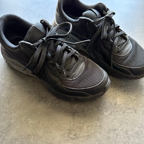 Nike Air Max Thea sneakers i størrelse 37. Modellen har svart overdel med hvitt prikkemønster og lys mellomsåle. Klassisk snøring foran og synlig Air Max-demping i hælen. Skoene passer som joggesko eller fritidssko i hverdagen.