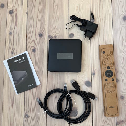 Allente Android TV dekoder i svart. Dekoderen leveres i original eske. Enheten er merket «The decoder powered by Android TV» og er beregnet for bruk sammen med Allente-tjenester. Esken oppgir at det følger med fjernkontroll, HDMI-kabel, strømkabel og nødvendig dokumentasjon, avhengig av hva som faktisk er inkludert ved salg. Egner seg til tilkobling mot TV via HDMI for mottak og bruk av Allente sitt TV-innhold basert på Android TV-plattformen.