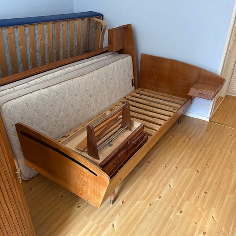 TEAK seng med RATTAN 60 talet