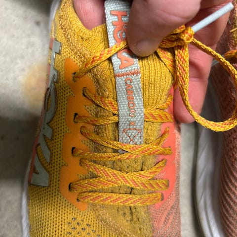Selger Hoka Clifton 8 løpesko, tursko i størrelse 36 dame. Skoene har overdel i pustende meshmateriale og mellomsåle med demping. Farge i oransje/koralltoner med hvit såle. Yttersåle i gummi gir grep mot underlaget. Passer til løping og annen trening utendørs eller innendørs. Brukt noen få ganger. Selges kr.300,- + frakt.