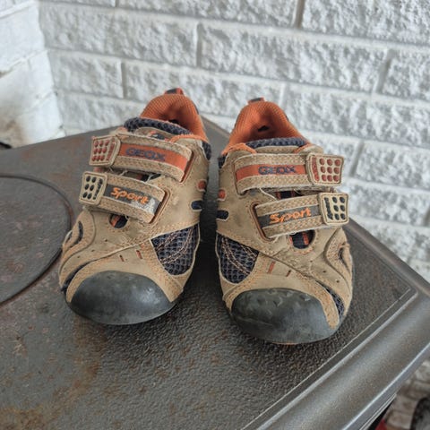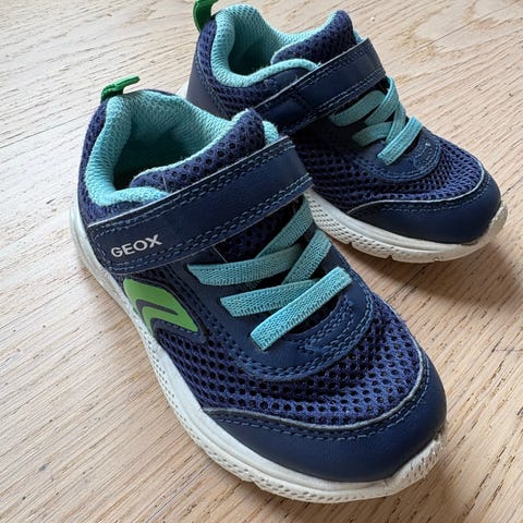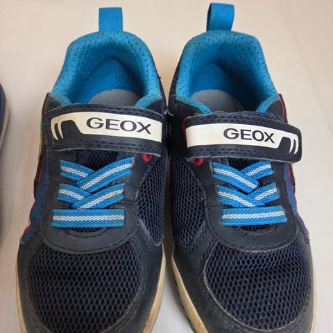Geox joggesko for barn i størrelse 23. Skoene er blå med hvite detaljer og har to borrelåsstropper over vristen for enkel av- og påkledning. Overdelen er en kombinasjon av syntetisk materiale og mesh for bedre pusteevne. Innsiden har perforert innersåle med Geox-patent for ventilasjon. Yttersåle i gummi gir godt grep. Modellen er beregnet på gutt, men kan brukes av alle som ønsker denne typen joggesko i denne størrelsen.