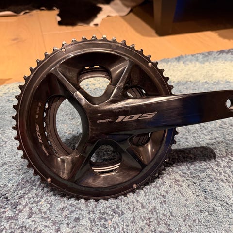 Shimano 105 FC-5700 kranksett for landeveissykkel. Kranksettet er 2-delt (dobbel krank) for 10-delt drivverk. Tannkombinasjon på klingene er 53-39T, og krankarmene er 175 mm lange. Farge svart. Passer til landeveissykler som bruker Shimano Hollowtech II-standard og 10-delt Shimano-girsystem i 105-serien eller kompatible grupper.