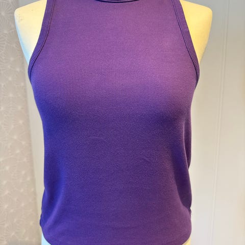 Bik Bok singlet for dame i størrelse M. Singleten er oransje og laget i viskoseblanding med stretch, som gir en kroppsnær passform. Modellen har smale stropper og åpen rygg, med tettsittende fasong og kort lengde. Egnet som sommertopp eller til lag-på-lag bruk. Materiale ifølge lappen: 55 % viskose, 40 % polyamid og 5 % elastan.
