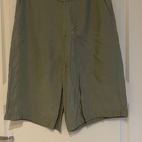 Primark shorts for dame i størrelse S. Shortsen er olivengrønn og laget i viskose. Den har strikk i livet bak og knytesnor foran for justerbar passform. Modellen har rette ben og en avslappet fasong som gir god bevegelighet. Egnet til hverdagsbruk og fritid. Material- og vaskeinformasjon står på innvendig lapp. Selges til fastpris kr. 50.